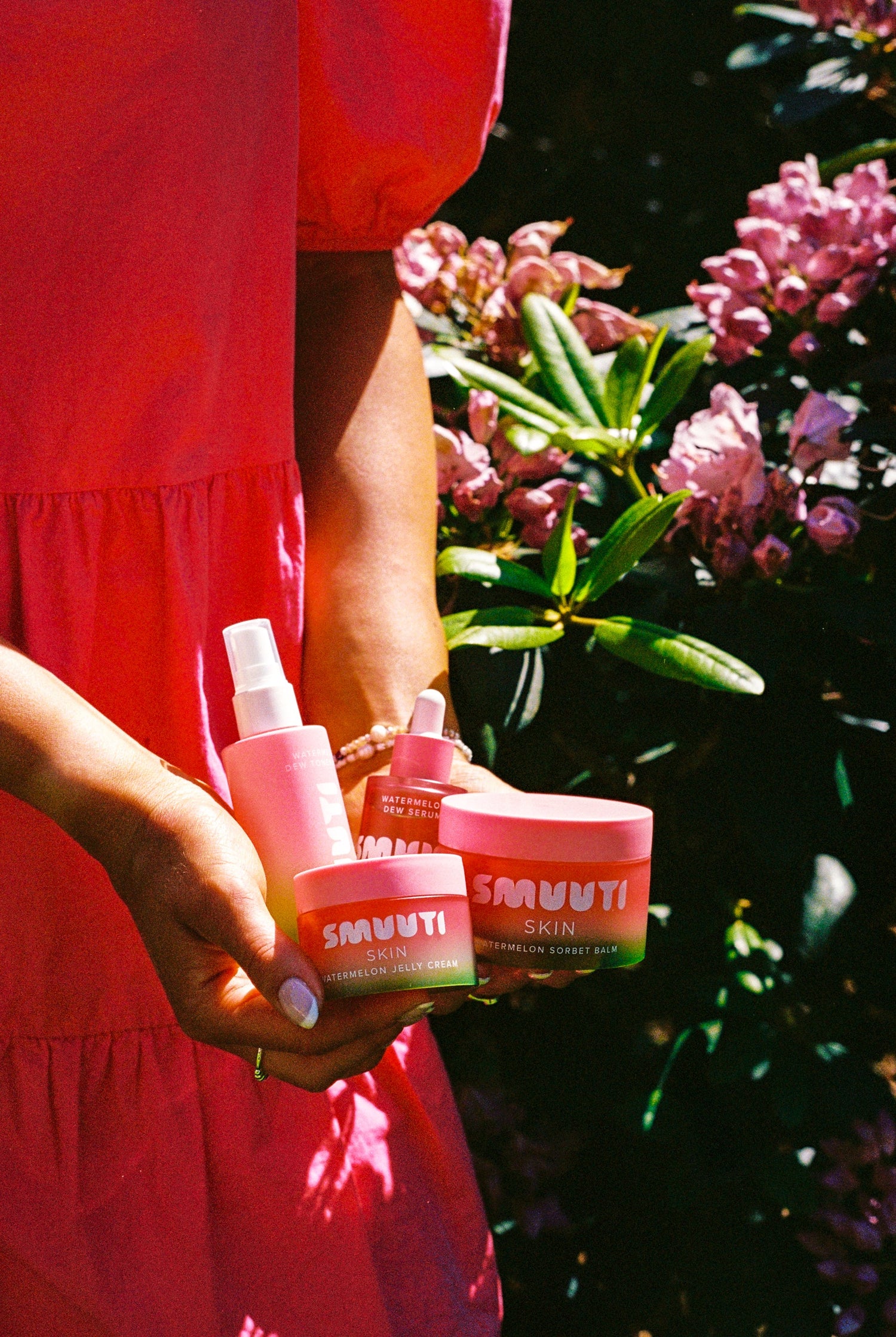 The Watermelon Dew range is all about hydrated, radiant and healthy skin. That’s why hyaluronic acid and watermelon extract were chosen as the main ingredients. Smuuti Skin products use hyaluronic acid in three different sizes. The smaller the hyaluronic acid molecules, the deeper they penetrate the skin.