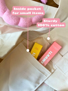 Made of a sturdy 100% cotton material, it's perfect for taking your Smuuti Skin faves on the go.